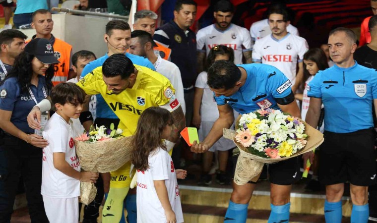 Karşılaşma öncesi geçen yıl Mersin Polisevi’ne düzenlenen terör saldırısında şehit olan polis memuru Sedat Gezer’in çocukları, hakem ve oyunculara çiçek verdi.