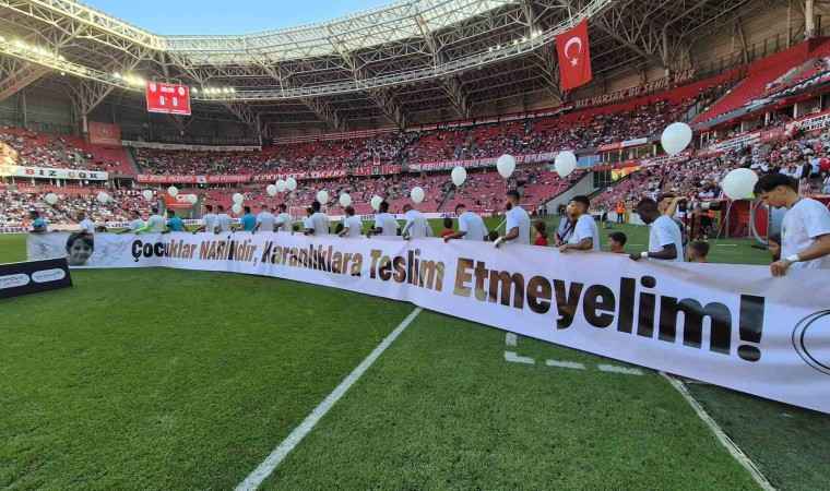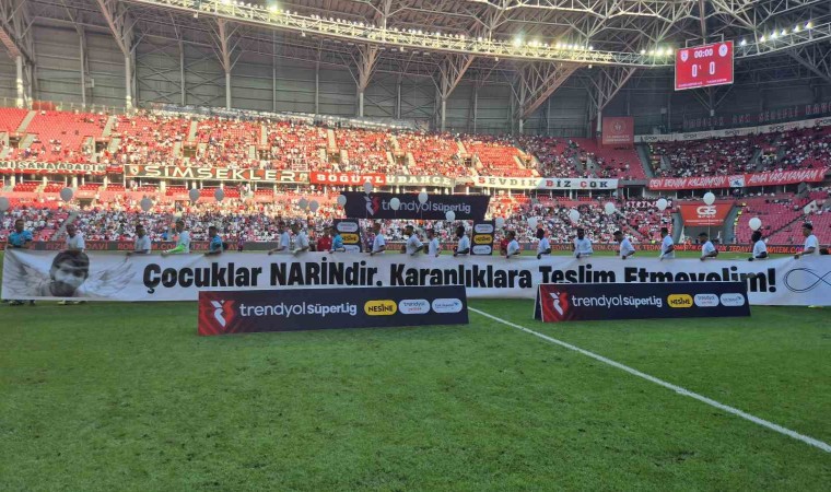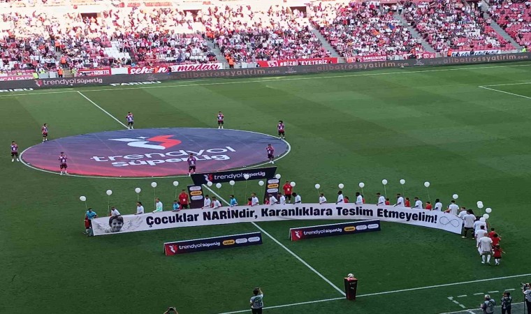 Trendyol Süper Lig’in 5. haftasında Samsunspor ve Konyaspor’lu futbolcular sahaya, "Çocuklar Narin’dir, karanlıklara teslim etmeyelim" yazılı pankart ile Narin’in resminin olduğu tişört ve beyaz balonlarla çıktılar. Mücadelede ilk 20 dakika golsüz eşitlikle geçildi.