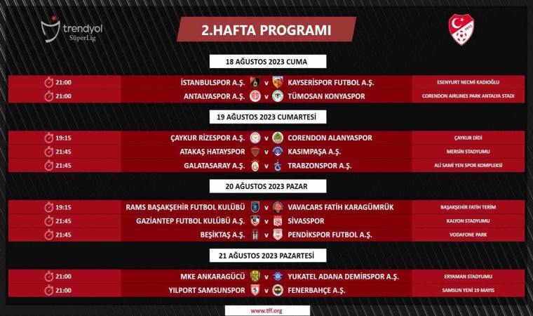 Süper Lig 2. hafta programı: