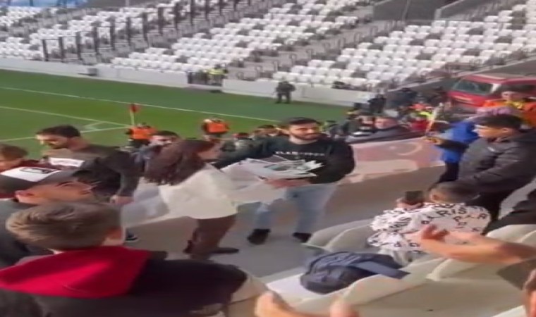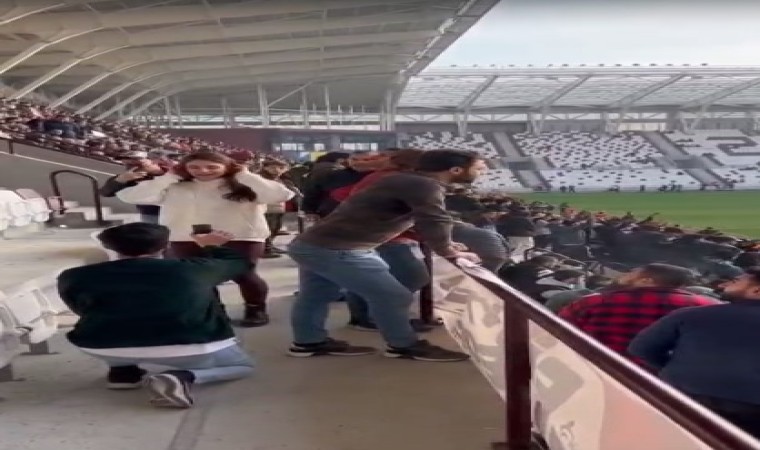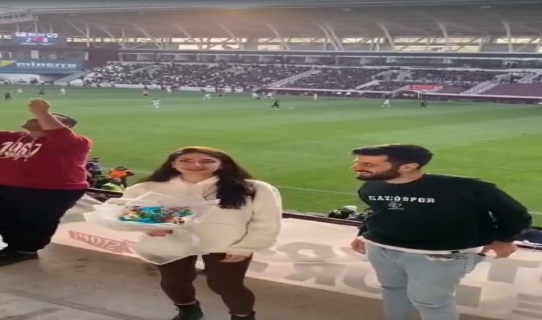 Elazığspor-Hacettepe 1945 maçını tribünden takip eden Numan Oğuz, sevgilisi Çağla Özdoğan’a evlilik teklif etti ve evet cevabını aldı.