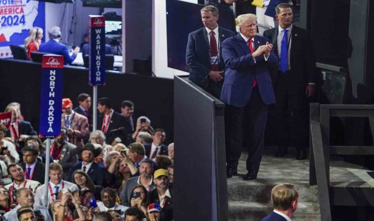 ABD’nin eski Başkanı ve Cumhuriyetçilerin başkan adayı Donald Trump, suikast girişimi sonrası halkın karşısına ilk kez çıktı. Wisconsin eyaletinin Milwaukee kentinde düzenlenen Cumhuriyetçi Parti Ulusal Kongresi’nde kulağı bandajlı bir şekilde salona giren Trump, destekçileri tarafından alkışlarla ve tezahüratlarla coşkulu bir şekilde karşılandı. Trump, yeni açıkladığı başkan yardımcısı adayı Cumhuriyetçi Senatör James David Vance ile parti üyelerini ve destekçilerini selamladı. Kongrede konuşma yapmayan Trump, destekçilerinin tezahüratlarına teşekkür ederek karşılık verdi.