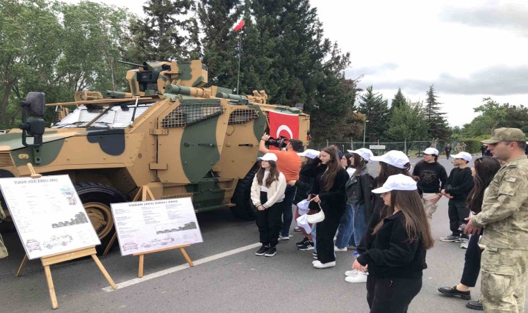 Etkinliğin devamında öğrenciler, yerli ve milli imkanlarla üretilen Vuran, Kirpi, komuta aracı, M4K kurtarıcı aracı ve hava savunma araçlarının yer aldığı sergiyi gezerken, zaman zaman araçlara binen öğrenciler askeri personel tarafından bilgilendirildi.
