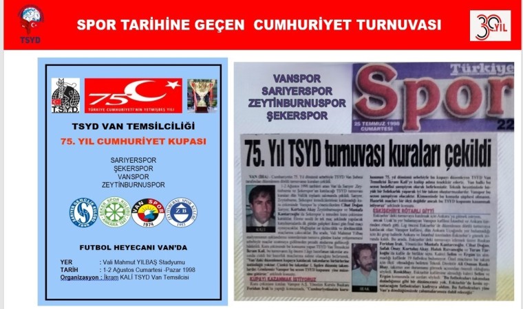 Türkiye’nin en güçlü gazetecilik meslek kuruluşlarından biri olan Türkiye Spor Yazarları Derneği (TSYD) Van Temsilciliği, 30. yıla ulaşmanın mutluluğunu yaşıyor.