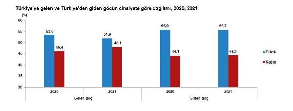 TÜİK'in açıkladığı, 2021 yılına ilişkin uluslararası göç istatistiklerine göre; yurt dışından Türkiye'ye göç edenlerin sayısı 2021 yılında, bir önceki yıla göre yüzde 116,9 artarak 739 bin 364 kişi oldu. Göç eden nüfusun yüzde 51,9'unu erkekler, yüzde 48,1'ini kadınlar oluşturdu. Yurt dışından gelen nüfusun 124 bin 269'unu Türk vatandaşları, 615 bin 95'ini ise yabancı uyruklular oluşturdu.