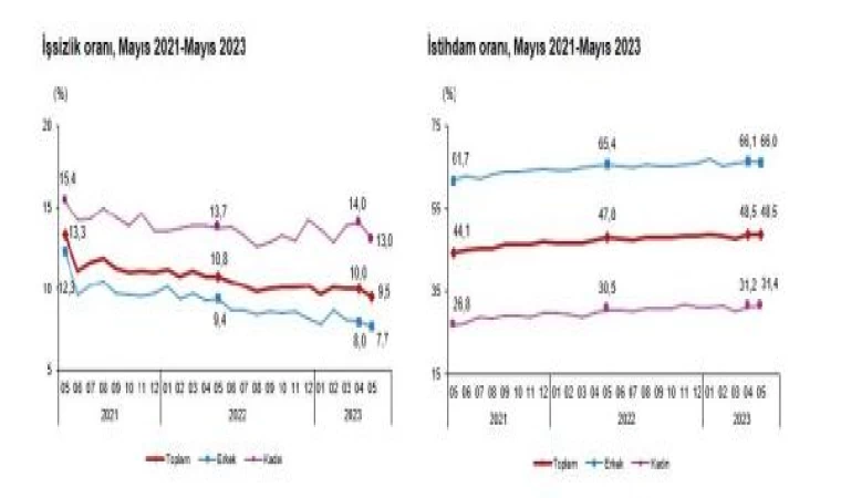Doğa Başak ÖZTÜRK/ANKARA, (DHA)-TÜRKİYE İstatistik Kurumu (TÜİK), mayıs ayında işsizlik oranının 0,5 puan azalarak yüzde 9,5 seviyesine gerilediğini duyurdu.
