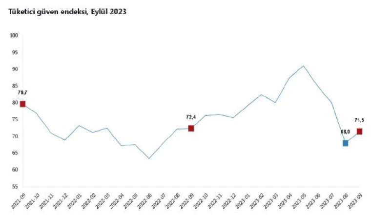 ANKARA, (DHA)- TÜRKİYE İstatistik Kurumu (TÜİK), tüketici güven endeksinin eylülde yüzde 5,1 oranında artarak 71,5 olduğunu duyurdu.