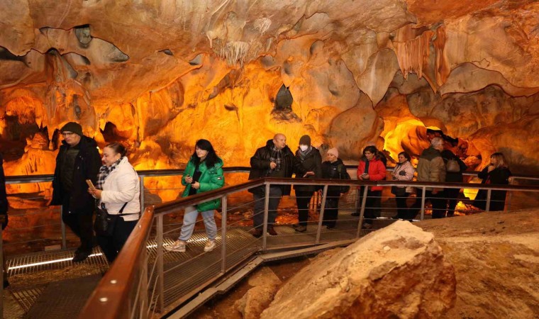 Akademisyenler daha sonra hizmete açılan kafeteryada kısa bir mola verdi. Tulumtaş Mağarası’nda ziyaretçilere hizmet vermeye başlayan hediyelik eşya bölümünü de gezen akademisyenler Tulumtaş Mağarası tasarımlı şapka, tişört, bez çanta, anahtarlık, termos, kupa, kalem, magnet, kırlent, yastık kılıfı gibi çeşitli ürünlerden anı olarak aldı.