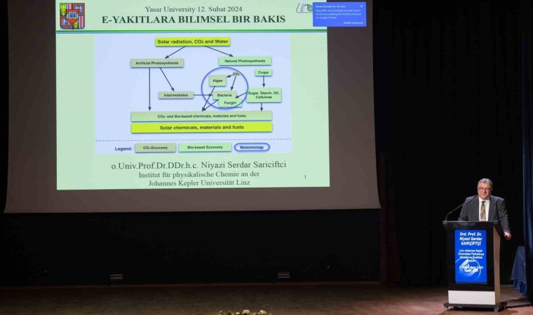 Yaşar Üniversitesi 2023-2024 akademik yılı bahar dönemi açılış dersini, Linz Johannes Kepler Üniversitesi Fizikokimya Kürsüsü ve Enstitüsü Başkanı ve 2. Selçuk Yaşar Ödülü Sahibi Ord. Prof. Dr. Niyazi Serdar Sarıçiftçi verdi. ‘E-Yakıt Teknolojilerine Bilimsel Bir Bakış’ başlıklı derse; üniversite öğrencileri, akademisyenler ve İzmir Kız Lisesi ile Bahçeşehir Koleji öğrencileri de katıldı.