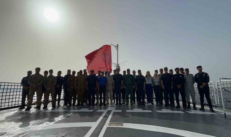 Konuşmaların ardından TCSG Umut’un helikopter platformunda aile fotoğrafı çektirildi.