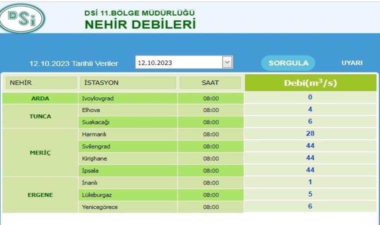 DSİ 11. Bölge Müdürlüğü Nehir Debi verilerine göre, geçen yıl aynı ay Kirişhane İstasyonu’nda 69 olan Meriç Nehri’nin debisi 12 Ekim 2023 tarihinde 44 metreküp saniyeye geriledi. Tunca Nehri’nin Suakacağı İstasyonu’ndaki ölçümde ise nehrin debisinin 6 metreküp saniyeye kadar gerilediği görüldü.