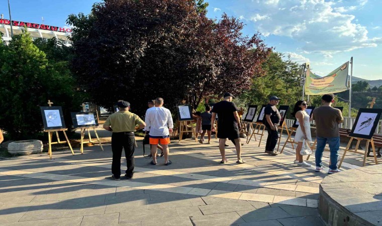 Tunceli’de yaşayan 11 yaşındaki Deniz Acar, küçük yaşına rağmen, yaklaşık 2 yıldır yaptığı kara kalem, sulu boya, akrilik boya ve yağlı boya eserlerini kent meydanında görücüye çıkardı.