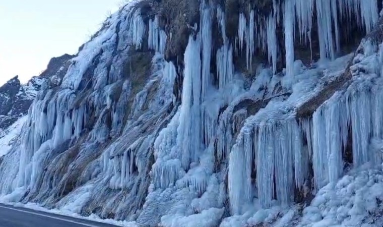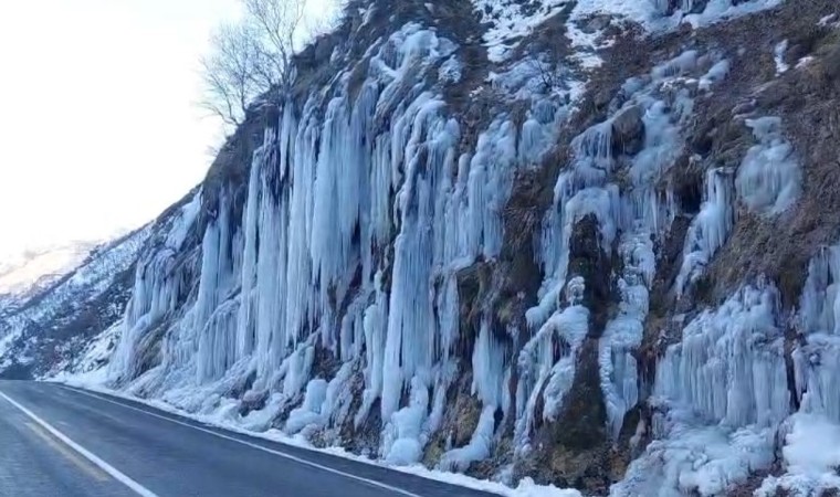 Tunceli-Pülümür-Erzincan karayolu üzerinde bulunan Ağlayan Kayalar, hava sıcaklıklarının düşmesiyle birlikte buz tutarken, ortaya çıkan manzara görsel şölen oluşturdu.