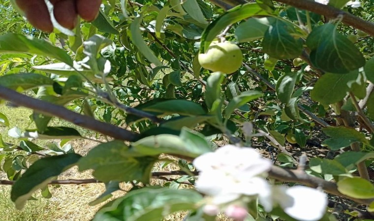 Tunceli’nin Çemişgezek ilçesine bağlı Ulukale köyünde bir elma ağacı, üzerinde meyve varken, aynı zamanda da çiçek açtı.