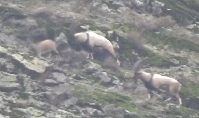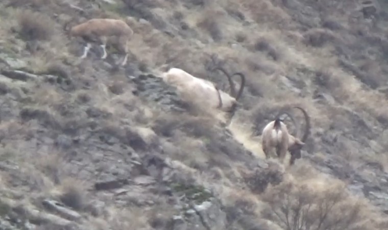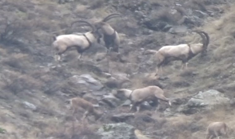 Tunceli’de koruma altında bulunan ve çiftleşmek için zirvelerden vadilere doğru inen yaban tekeleri ihtişamıyla görenleri mest etti.