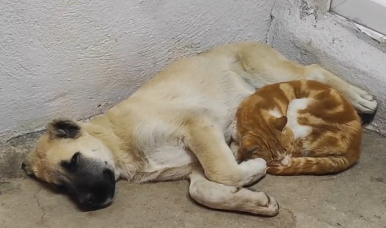 Tunceli’de son zamanlarda hava sıcaklıklarının düşmesiyle birlikte ezeli düşman olarak bilinen kedi ve köpeğin ısınmak için birbirlerine sokulduğu anlar, cep telefonu kamerasıyla kayıt altına alındı. Mazgirt ilçesinde çekilen görüntülerde kapı önündeki bir kedi, köpeğe sokularak sıcacık bir uyku çekti.