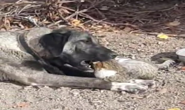 Tunceli’deki bir diğer görüntü ise Nazımiye ilçesinde çekildi. Çoban köpeği, kendisiyle oyun oynamak isteyen kedinin bu isteğini geri çevirmedi. Kendisine sokulan kedinin başını zaman zaman ağzına alarak oyun oynayan köpeğin o anları, cep telefonu kamerasıyla kayıt altına alındı.