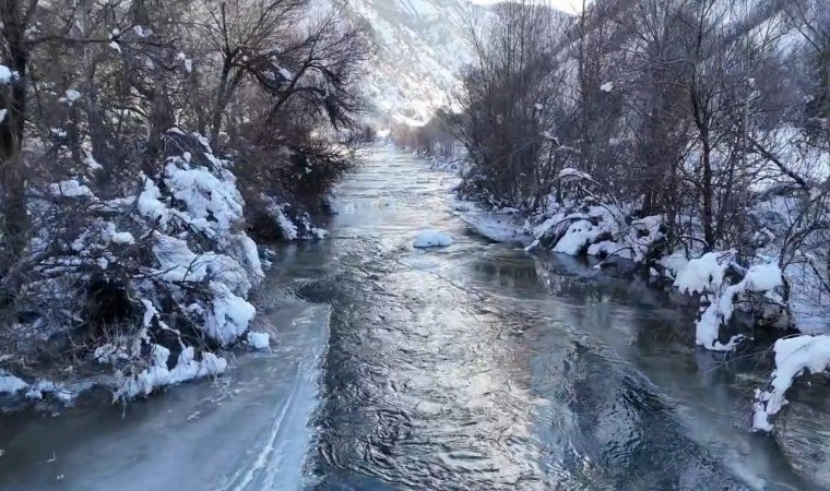 Hava sıcaklıklarının geceleri eksilere düştüğü Tunceli’de, Pülümür Çayı yer yer buz tuttu.