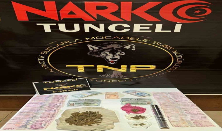 Tunceli Emniyet Müdürlüğü Narkotik Suçlarla Mücadele Şube Müdürlüğü ekipleri tarafından uyuşturucu madde ticaretine yönelik operasyon gerçekleştirildi. Operasyon kapsamında B.K. isimli şahıs gözaltına alınırken şahsın ikametinde yapılan aramada 51,74 gram esrar, 1,40 gram kenevir tohumu, 17 bin 565 TL, 800 dolar nakit para ele geçirildi.