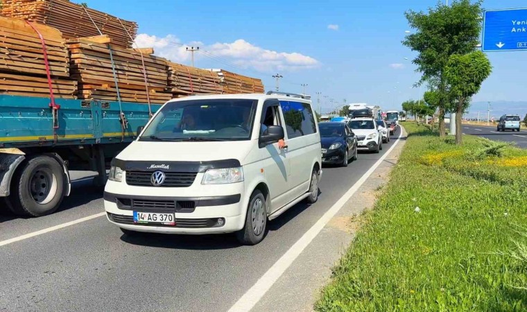 TEM Otoyolu’nun Bolu Dağı Tüneli’nde yapılan çalışmalar nedeniyle sürücülerin D-100 kara yoluna yönlendirildiği Bolu geçişinde uzun araç kuyrukları oluştu. Araç yoğunluğunun oluştuğu Bolu geçişinde, ambulansın emniyet şeridinden geçmekte zorlandığı anlar kameraya yansıdı.