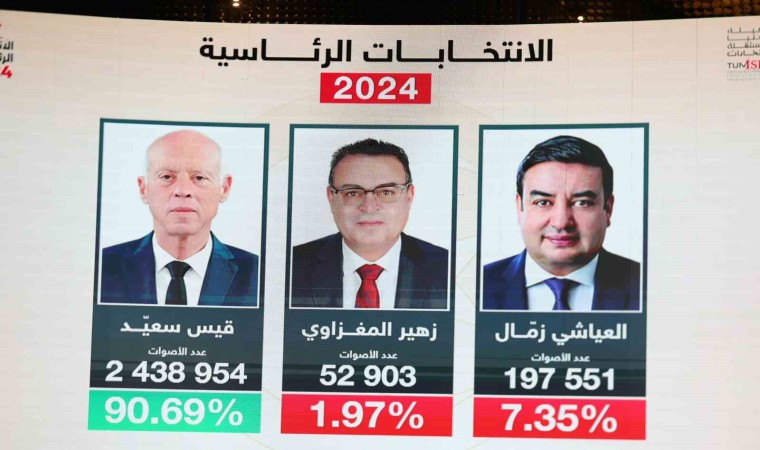 Tunus’ta düzenlenen cumhurbaşkanlığı seçiminde oyların 90.69’unu alan mevcut Cumhurbaşkanı Kays Said, yeniden cumhurbaşkanı seçildi.