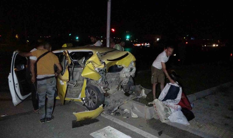 Kaza; Manavgat-Alanya D-400 Karayolu’nda dün akşam meydana geldi. Edinilen bilgiye göre, Uğur Erdem’in kullandığı 35 DBB 55 plakalı tur minibüsü trafik ışıklarına geldiğinde, kırmızı ışıkta beklemekte olan Mehmet Taylan’ın kullandığı 63 T 0037 plakalı ticari taksiye arkadan çarptı. Hurdaya dönen ticari taksi, çarpmanın şiddetiyle yaklaşık 20 metre giderek trafik lambasına çarptıktan sonra durabildi.