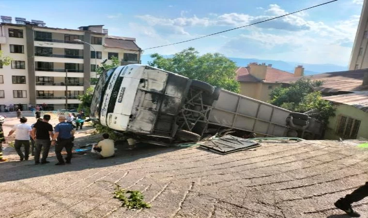 Tur otobüsü, evin bahçesine devrildi: 24 yaralı