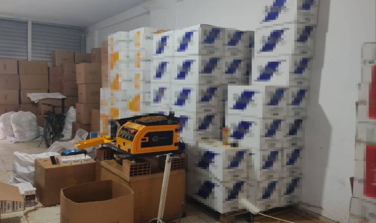 Turgutlu İlçe Jandarma Komutanlığı ile Manisa İl Jandarma Komutanlığı KOM Şube ekiplerince; E.A.(50), Ç.D.(38), A.U.(70), H.Ö.U.(43), C.K.(49), M.K. (33) ve S.T. (44) isimli şahıslara ait ev ve iş yerlerinde yapılan arama neticesinde, piyasa değeri yaklaşık 5 milyon TL olan; 135 bin 398 adet dolu makaron sigara, 745 kg açık kıyılmış sarmalık tütün, 5 milyon 531 bin 370 adet boş makaron, 12 adet kompresörlü elektronik sigara sarma makinası, 4 adet hava kompresörü, 430 adet kesilmiş ikiz bandrol, 112 bin adet kilitli poşet, 21 adet manuel sigara sarma makinası ele geçirildi. 7 şüpheli şahıs hakkında adli işlemlere başlandı.
