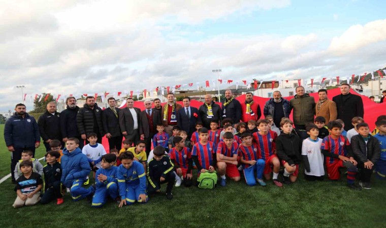 Gerçekleşen açılışın ardından futbol sahasında incelemelerde bulunan Başkan Aras, genç futbolculara futbol topu hediye etti. Amatör kulüp sporcuları sahanın ortasında dev Türk bayrağı açtı.
