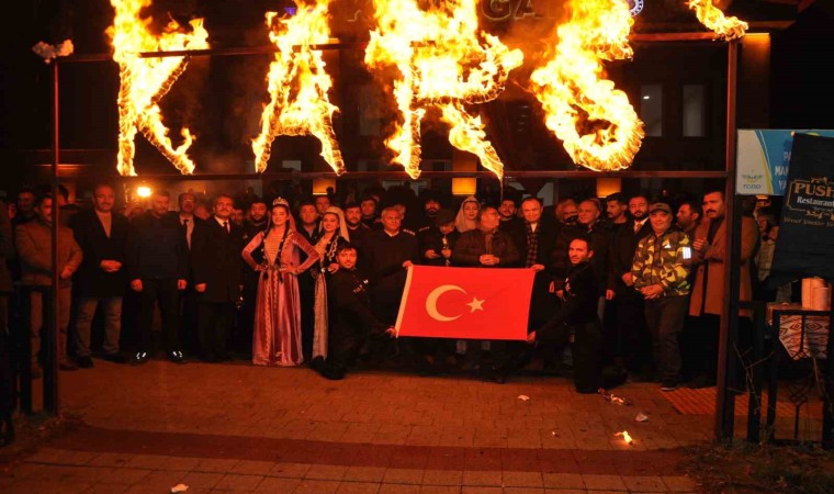 Kars Gar Binası’nda aşıklar, Kafkas ekibin gösterisi ile unutulmaz bir gece yaşayan Turistik Doğu Ekspresi yolcuları, gar binası önünde meşalelerle yakılan Kars yazısı önünde bol bol fotoğraf çektirdi.