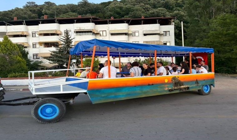 Bartın’ın İnkumu beldesinde yaz aylarında yerli ve yabancı turistlerin sahil turu yapabilmesi için hizmet veren gezi traktörü bu yıl da seferlerine başladı.