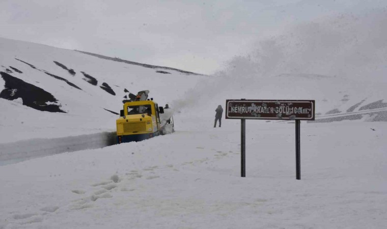 Kentin turizmine katkı sunan gölün yolunu açmak için karla mücadele çalışmalarına başladıklarını belirten İl Özel İdaresi Merkez Şantiye Şefi Nail Aşit, “Yolda kar kalınlığı yer yer 6 metreyi buluyor. Karla mücadelemizin son ayağı olan Nemrut Krater Gölümüzün yolunu açmaya bugün itibari ile başladık. İlimiz için son derece önemli olan bu yolu açmaya başladık. Yolda yer yer kar kalınlığı 5-6 metreyi bulmakta. Ülkemizin birçok yerinde insanlar denize girerken biz 1-2 gün içinde karla mücadelemizi tamamlamış olacağız. Bayramın 1 veya 2’nci gününe kadar göle ulaşmayı hedefliyoruz. Nemrut Krater Gölü yerli ve yabancı turistler açısından çok önemli bir yere sahip. Bizlerde bunun bilincinde olduğumuz için 3 iş makinesi, bir kepçe ve bir rotatifle çalışmalarımızı sürdürüyoruz” dedi.