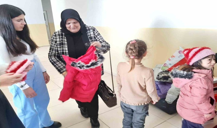 Öğrencilere destek amaçlı mont, bot, eşofman, kış çorabı, bere, çikolata ikramı; Anneler için pardesü, kazak, etek, çay- şeker hediye eden anneler hem çocukları hem de annelerini mutlu etti.