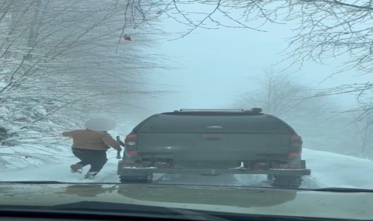 Düzce’de Off-Road aracının arkasındaki Türk Bayrağı’nın kirlenmemesi için gösterilen hassasiyet takdir topladı.