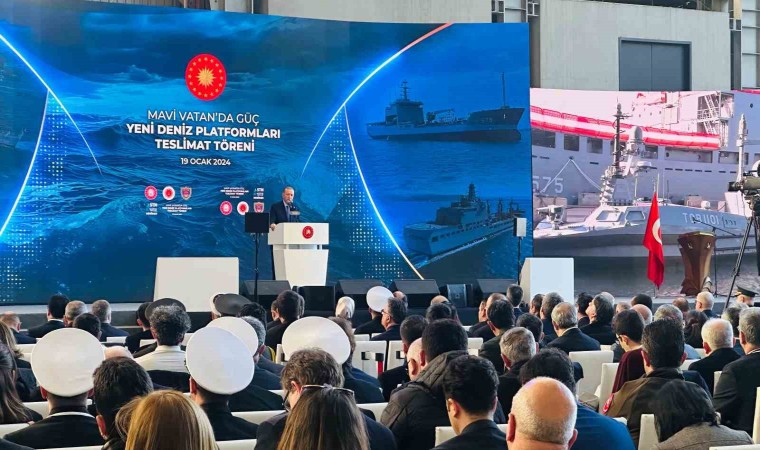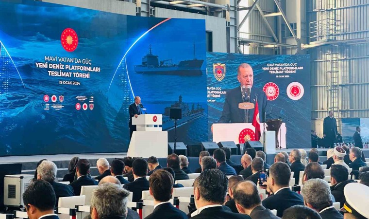Erdoğan, her bir geminin Deniz Kuvvtleri’ne güç katacağı inancında olduğunu vurgulayarak, "Denizde ikmal muharebe gemisi TCG Derya, TGC Anadolu’dan sonra en büyük gemi olma özelliğine sahiptir. TGC Derya’nın hizmete girmesiyle yüzer birliklerin akaryakıt ve su ikmalleri süratle yapılacak, muharip unsurların su ihtiyaçları harekat alanına yakın bölgelerde rahatlıkla karşılanacaktır. Milgem projesinin 5.gemisi olan TGC İstanbul; Türkiye’nin yerli imkanlarla ürettiği ilk milli fırkateyndir. Farklı radar, yakın hava savunma ve elektronik harp sistemlerimizi kendi imkanlarımızla geliştirip entegre ettik. TGC İstanbul’a entegre edilen milli dikey hançer sistemidir. Lojistik destek gemimiz TGC Üsteğmen Arif Ekmekçi muharip unsurların lojistik ihtiyaçlarını temin edecektir. Teslimatı yapılan gemilerimizin donanma ve Türk Silahlı Kuvvetlerimize hayırlı olmasını diliyorum. Bu sevinci yaşatan her kuruma, milletim adına teşekkür ediyorum. Bugün sadece gemilerimizin teslimatı ile yetinmiyoruz. Dünyada elektronik harp kabiliyetine sahip ilk insansız su üstü aracımızı da donanmamıza teslim ediyoruz. Otonom su üstü deniz aracımız Marlin Sida; istihbarat, keşif, su üstü harp elektronik destek, elektronik taarruz görevlerini insansız olarak icra edecektir. Üstün teknik özelliklerle denizlerdeki hakimiyetimizi destekleyecek, dosta güven düşmana korku verecektir. Marlin Sida’nın da deniz kuvvetlerimize hayırlı olmasını diliyorum. Mühendislerimizi, teknisyenlerimizi, işçilerimizi kutluyor. Kendilerine şükranlarımı ifade ediyorum. Bu başarılı projelerin sırrı kurumlarımız arasında giderek büyüyen yakın işbirliği ve koordinasyondur. Savunma Sanayi Başkanlığı öncülüğünde Deniz Kuvvetleri Komutanlığımız, askeri ve özel tersanelerimiz; ilgili devlet kurumları, özel sektör, üniversiteler, Kobi’lerimiz ahenkli şekilde çalışıyor. Kurumlar arası eşgüdüm güçlendikçe oyun değiştiren projeler ortaya çıkıyor. Önümüzdeki dönemde bu koordinasyonu çok daha ileriye taşıyarak, yeni başarılara imza atacağımıza yürekten inanıyorum. Bu çalışmalarımızı Barbaros Hayrettin Paşa’nın "denizlere hakim olan cihana hakim olur" sözünü şiar edinerek yürütüyoruz. Mavi vatanın güvenliğini temin için bir çok projeyi hayata geçirdik. Projelerimizde yüzde 80 yerlilik oranına ulaştık. Gemilerimizin sadece inşasını, kaba işçiliğini yapmakla kalmıyoruz. Tüm gemilerde ihtiyaç duyulan sensör, faydalı yük , silah ve mühimmatları yerli olarak üretebiliyoruz. Bu çerçevede çok maksatlı amfibi hücum gemisi, destek gemisi, Barbaros sınıfı fırkateyn modernizasyonu, lojistik destek gemisi, yeni tip denizaltı, denizaltı modernizasyonu, Türk tipi hücumbot tasarımı, insansız denizaltı, tüm bunlar yakın dönemde hayata geçirilen gurur abidesi projelerden birkaçıdır. Bu projeler savunma sanayi hedeflerimizin de tek tek gerçekleştiğini gösteriyor" şeklinde konuştu.