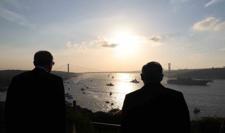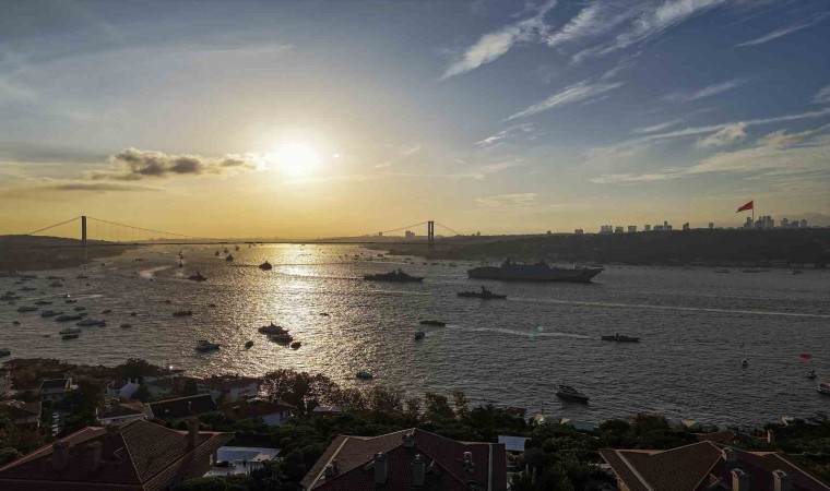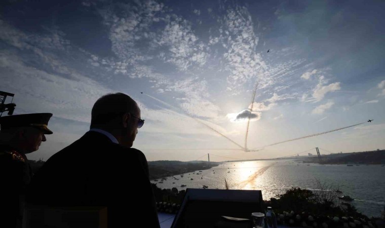 Cumhuriyet’in 100. yılı dolayısıyla Türk donanmasının 100 gemisi İstanbul Boğazı’ndan geçerek Cumhurbaşkanı Erdoğan’ı selamladı.