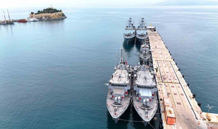 Türk Silahlı Kuvvetleri’nin (TSK) en büyük planlı tatbikatlarından biri olan Efes-2024’e katılan savaş gemileri, yakıt ikmali yapmak için Kuşadası Limanı’na yanaştı.