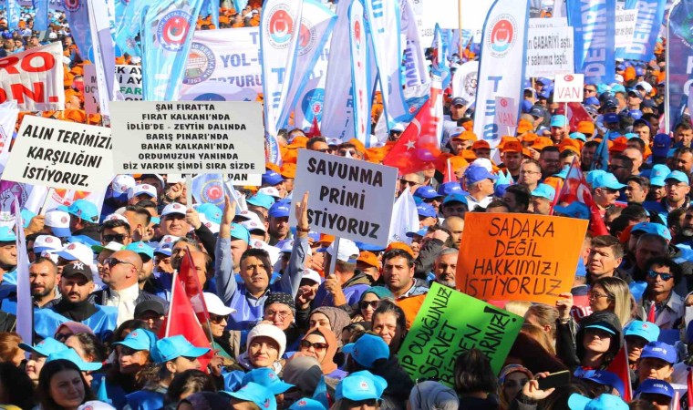 Türk-İş tarafından düzenlenen ’Zordayız, geçinemiyoruz’ mitingi Ankara’da yapıldı. Türkiye’nin çeşitli illerinden Ankara’ya gelerek mitinge katılan yaklaşık 150 bin işçi, Anadolu Meydanı’nda açtıkları pankartlar ile seslerini duyurmaya çalıştı. Mitingde konuşan Türk-İş Genel Başkanı Ergün Atalay, işçilerin emekli edilmesi halinde sağlık, enerji ve savunma sanayii gibi alanlarda üretim yapılamayacağını söyledi.