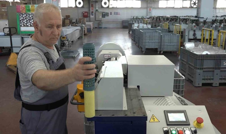 Bursa’da faaliyet gösteren Özgümüş Tekstil, kendi imkanlarıyla ürettiği makineyle herkesi kendine hayran bıraktı. İplik boyamada kullanılan bobinlerin tekrardan işlenmesinin önüne geçen makineyi, 8 yıllık çalışmanın sonuna ortaya çıkardıklarını belirten Özgümüş Tekstil sahibi Mete Tetik, Kimya yüksek mühendisiyim, sanayici ve Özgümüş tekstil in sahibiyim. Tekstil terbiye işleri ile uğraşıyoruz. Aynı zamanda enteresan makineler yapıyoruz. Bunlardan birisi Bobin düzeltme makinası. Bu dünyada bir ilk, ne benzeri ne de örneği var. Bizim kelle bobin dediğimiz bir şekilde ipler fabrikadan geliyor. Sonra biz onları delikli bobin dediğimiz yumuşak sarım bobinlerimize sarıp boyuyoruz. Bunları boyadıktan sonra plastik olan bobinler yamuluyor. Kullanılamaz hâle geliyorlar ve bir daha yerlerine girmiyor. Yaklaşık 250 ton mal boyayan boyahanede, 160 bin adet atılıyor ve tekrardan basılıyor. Yani çöpe gidiyor diyebiliriz. Bizim yapmış olduğumuz makineyle kullanılamaz hâle gelen bobinleri düzeliyor ve tekrar kullanılır hâle getiriyoruz” diye konuştu.
