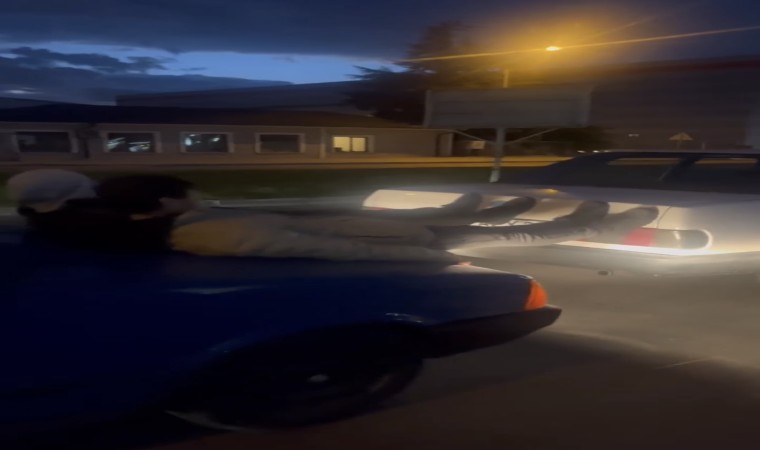 Olay, merkez Nilüfer ilçesi Organize Sanayi Bölgesi’nde meydana geldi. Edinilen bilgiye göre, seyir halindeki otomobil bozulunca yardımına yine aynı marka araçla gelen arkadaşı yetişti. Kaputun üstüne çıkan gençler bozulan Şahin model otomobili ayaklarıyla iterken o anlar cep telefon kamerasına yansıdı.