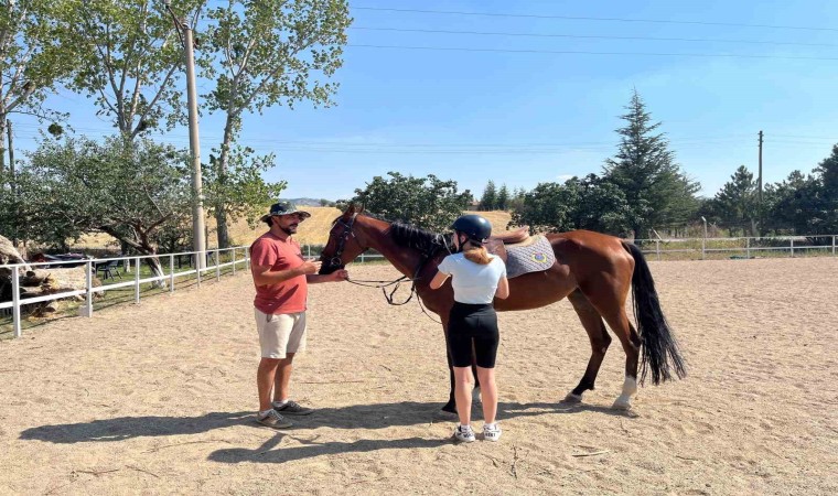 At çiftliğine gelen vatandaşlardan Handan Işıksal, ilk başlarda ata binmekten korktuğunu belirterek, “Sonradan öyle bir alıştım ki artık binmediğim zamanlar huzursuz hissediyorum. At korkumu ata binerek yendim. Şimdi çok seviyorum, baştaki korkumun yüzde 3’ü bile yoktur. Haftada bir, iki saat at binmeye geliyorum. Aslında hiçbir şeye benzemiyor. Ne araba ne motor, çok farklı bir duygu. Hem hayvanı seviyorsunuz hem onun koşarken verdiği hissi sevmeye başlıyorsunuz. Çok güzel bir duygu” ifadelerini kullandı.