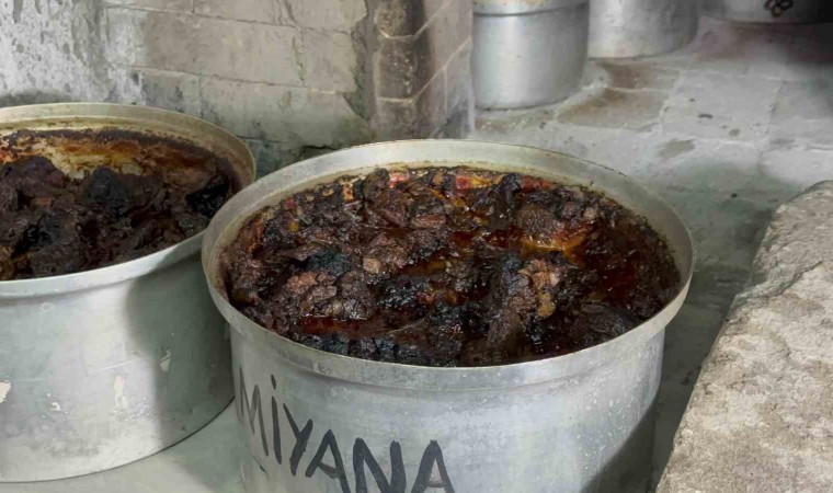 Karabük’ün Safranbolu ilçesine bağlı Yazıköy Köyünün yerel lezzetlerinden olan ve 16 saat pişirilen ’Yazıköy Keşkeği’ fırından çıkarıldı.
