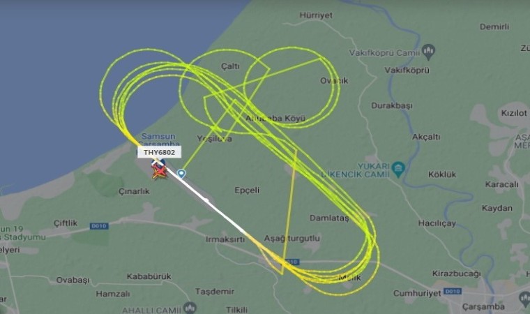 Samsun-Çarşamba Havalimanı’nda uçuş eğitimi alan pilotların gökyüzünde yaptığı geometrik hareketler, radara yansıdı.