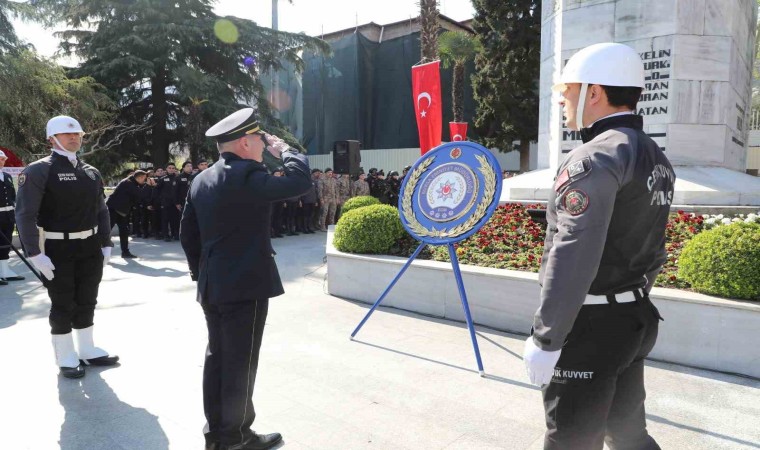 Polis teşkilatının 179. kuruluş yıl dönümü Bursa’da da törenle kutlandı. İl Emniyet Müdürü Sabit Akın Zaimoğlu tarafından Heykel’deki Atatürk anıtına çelenk sunumuyla başlayan tören, saygı duruşunda bulunulması ve İstiklal Marşı’nın okunması ile devam etti.