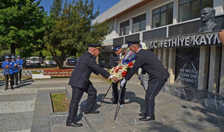 Kaymakamlık binası önünde yapılan kutlamaya Fethiye Belediye Başkanı Alim Karaca, Fethiye İlçe Emniyet Müdürü Kayhan Dadaşoğlu, İlçe Jandarma Komutanı Mustafa Çiçek, İlçe Sahil Güvenlik Komutanı Burak Akanpınar, kurum müdürleri, polisler, aileleri ve yakınları katıldı. Törende Atatürk heykeline çelenk sunulmasının ardından Cumhuriyet’in kurucusu Mustafa Kemal Atatürk ve tüm şehitlerimiz için 1 dakikalık saygı duruşunun ardından İstiklal Marşı okundu.