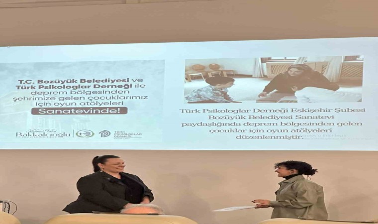 Bozüyük Belediyesi deprem felaketinin ardından gerek deprem bölgesine arama-kurtarma ekipleri göndererek gerekse içerisinde insani yardım malzemeleri, yakacak ve giyim eşyaları dolu tırları göndererek deprem bölgesine destek olmuş, ilçeye gelen depremzedelere de gerekli her türlü desteği sağlamıştı. Geçtiğimiz yıl Mart ve Nisan aylarında Bozüyük Belediyesi Sanatevi ile Eskişehir Türk Psikologlar Derneği paydaşlığında deprem bölgesinden Bozüyük’e gelen çocuklar için Sanatevi’inde oyun atölyeleri düzenlendi. Yapılan bu başarılı çalışmanın ardından depremin 1. yılında düzenlenen toplantıda Türk Psikologlar Derneği Eskişehir Şubesi tarafından Bozüyük Belediyesi Sanatevi’ne teşekkür edilerek teşekkür belgesi Bozüyük Belediye Tiyatrosu Genel Sanat Yönetmen Yardımcısı İlknur Durmaz’a takdim edildi.
