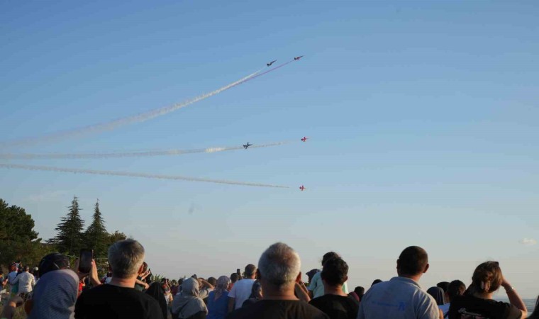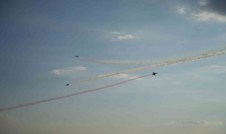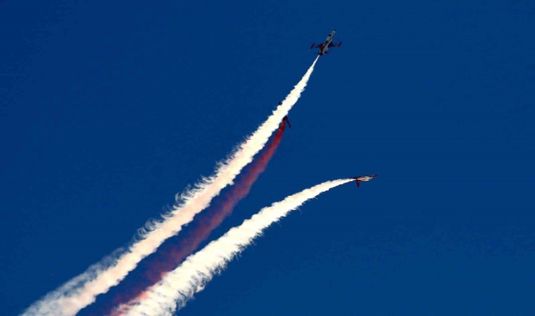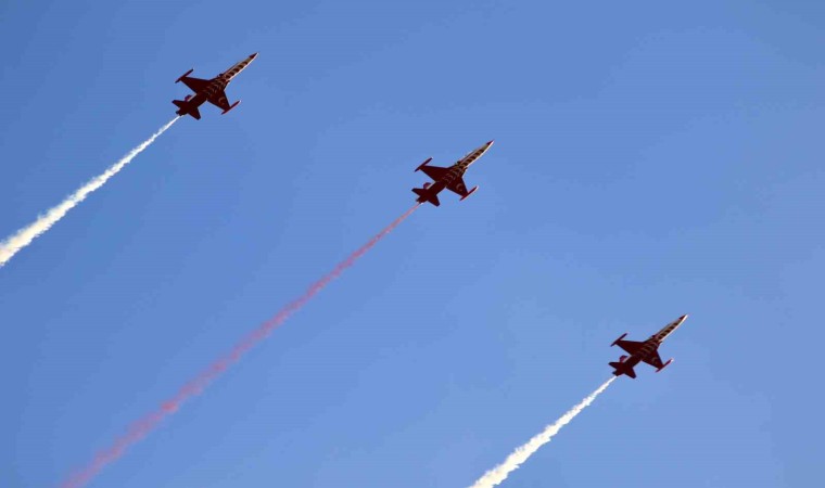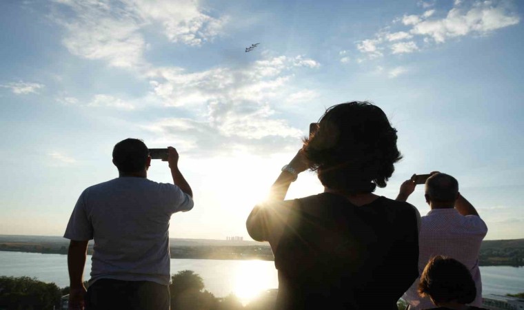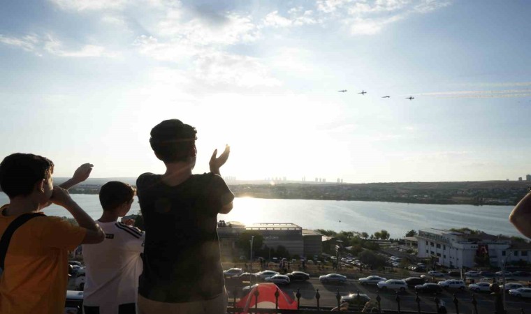 30 Ağustos Zafer Bayramı yurdun dört bir yanında coşkuyla kutlanmaya devam ediyor. Bu çerçevede Türk Hava Kuvvetleri akrobasi timi Türk Yıldızları da Ankara’nın Gölbaşı ilçesinde bulunan Mogan Gölü’nde akrobasi uçuşu gerçekleştirdi.