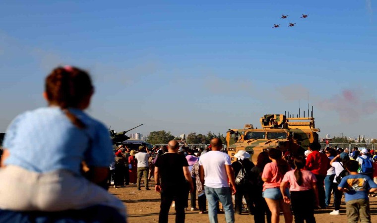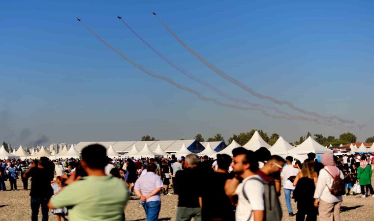 Adana’da düzenlenen TEKNOFEST’te Türk Yıldızları’nın gösterisi adeta gökyüzünü renklendirirken izleyenlerin nefeslerini kesti.
