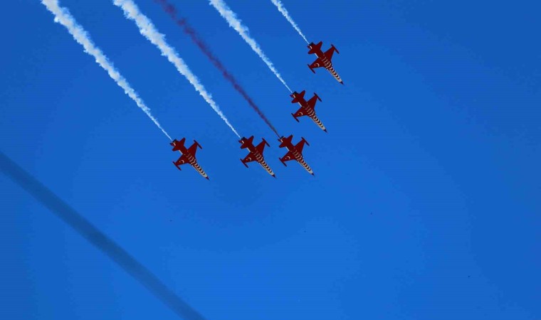 TEKNOFEST kapsamında Türk Yıldızları gösteri uçuşu gerçekleştirdi. Binlerce kişinin izlediği Türk Yıldızları, gökyüzünde adeta nefesleri kesti.