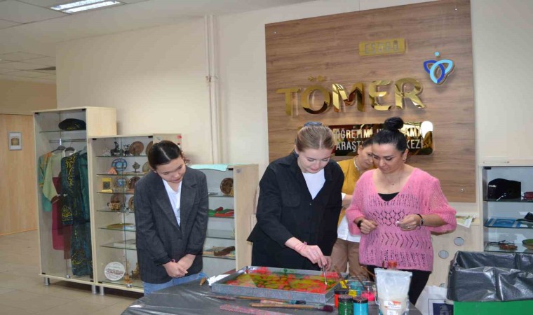 Eskişehir Osmangazi Üniversitesi’nde Türkçe öğrenen yabancı öğrenciler, ebru sanatı eğitimi aldı.