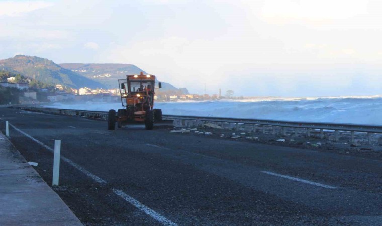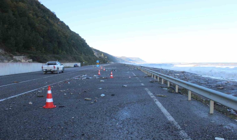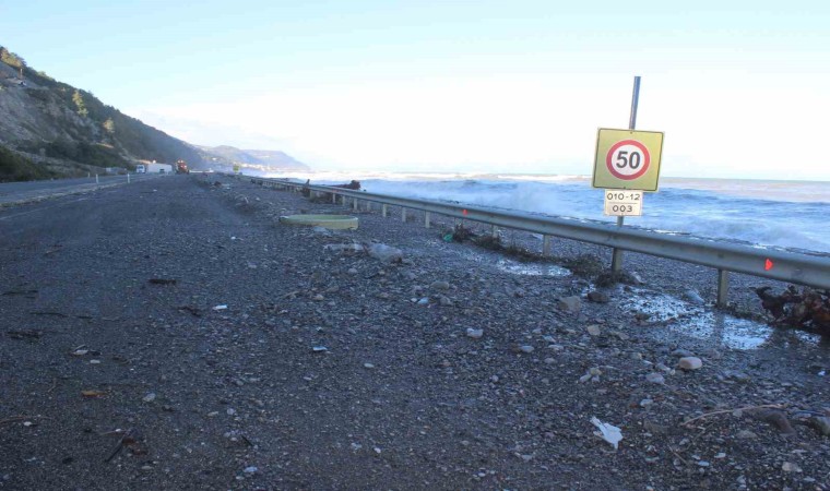 Dev dalgalar nedeniyle çift şeritli yol taş ve molozla kaplandı. Karayolları ekipleri, söz konusu bölgede gece saatlerinden itibaren çalışmalarını sürdürerek, çift şeritli yolun tek şeridini ulaşıma açtı.